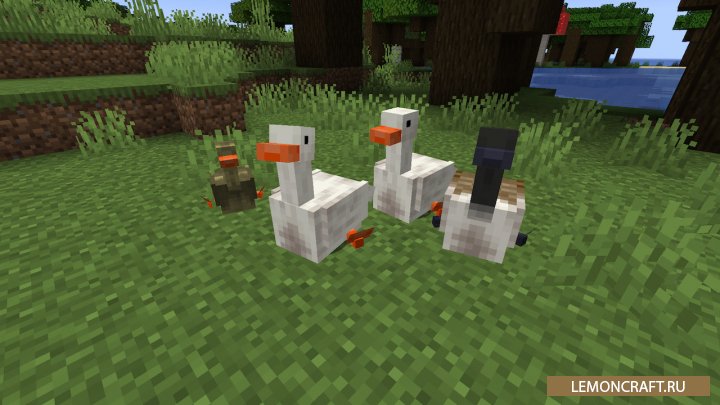 Мод на уток и гусей Untitled Duck добавляет в игру новых персонажей, уток и гусей, а так же несколько предметов непосредственно связанных с ними. Уток вы сможете разводить используя семена, а с самих уток получите перья. Так же утки умеют плавать, а если рядом с ними включить проигрыватель, начнут танцевать. Гусей так же можно разводить семенами, а приручать с помощью водорослей. Гуси отпугивают обитателе, как кошки криперов, а так же могут, как в реальной жизни, напасть на вас и выхватить находящийся у вас в руках предмет.